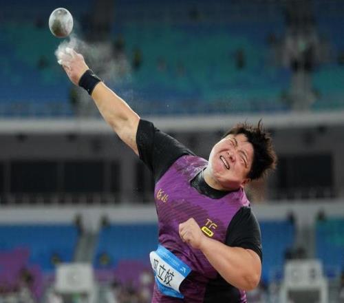 11月16日,巩立姣在第十五届全国运动会女子铅球决赛中。新华社记者 李一博 摄