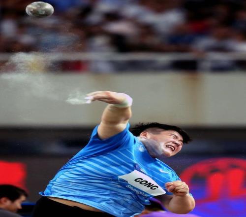 2018年5月12日,巩立姣在钻石联赛上海站女子铅球比赛中。新华社记者 凡军 摄
