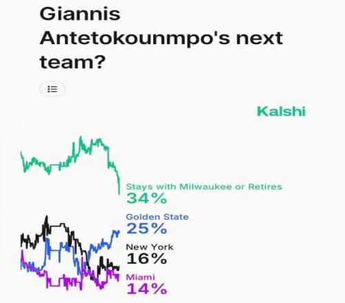 NBA常规赛还在如火如荼进行中,在巴特勒报销之后,勇士本赛季的争冠希望也跌入冰点。目前字母哥已经不愿意再继续留在雄鹿,也向球队提出了交易。只要提到字母哥换队,相信其余29队绝对都是有意的,他也是足够改变联盟决定改变联盟方向的球员。今天早些时候,某机构还更新了字母哥的下家概率,其中34%留在雄鹿,25%去勇士,16%尼克斯,14%热火,6%森林狼。