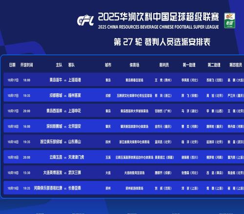 中超裁判!贺凯主哨铜梁龙南狮,牛明辉执法青岛红狮广西生死战 -